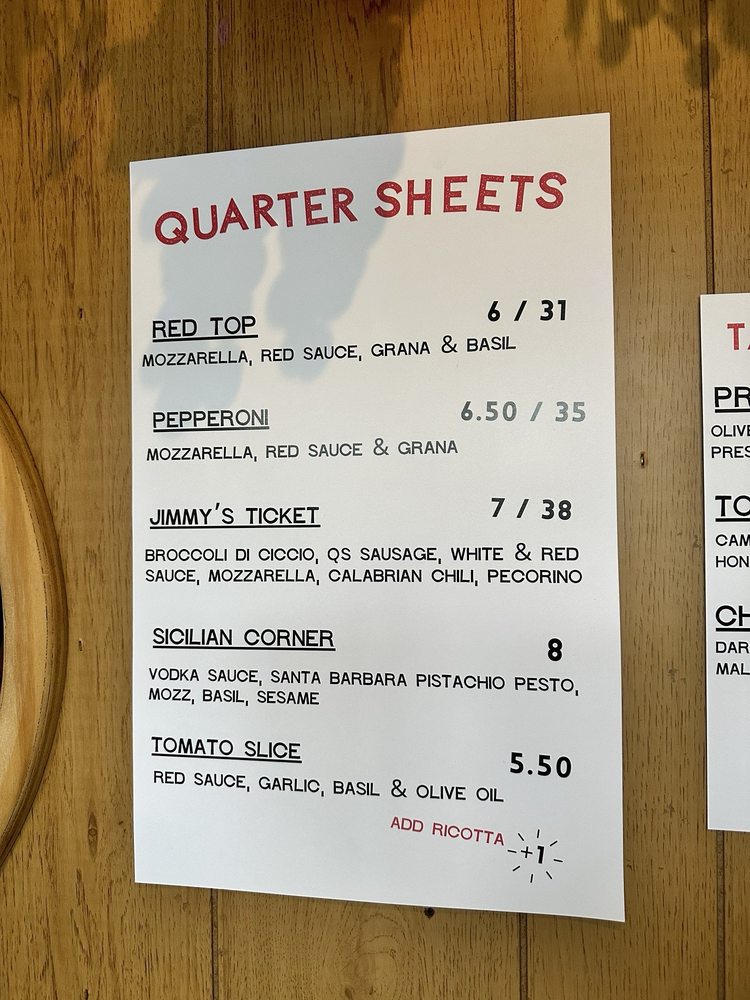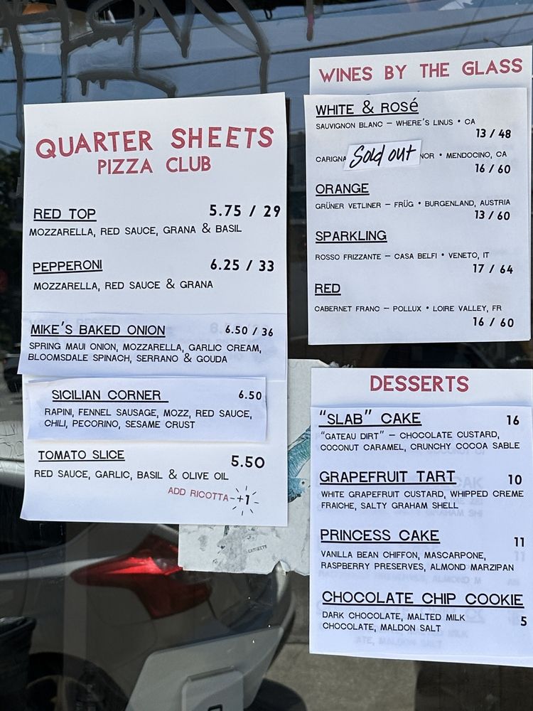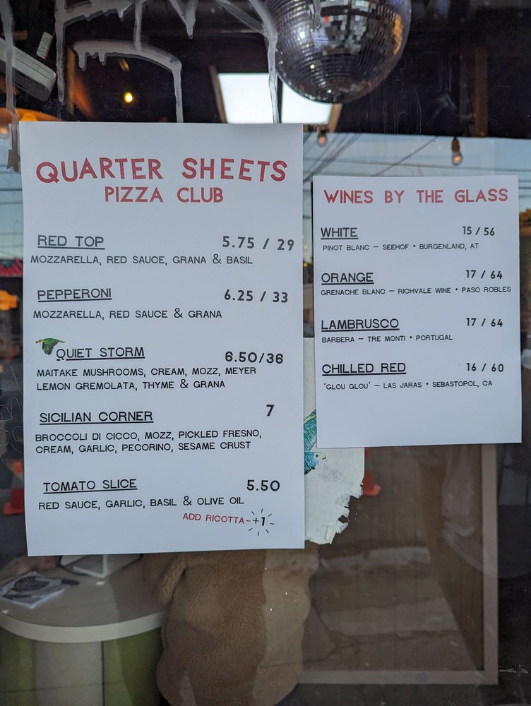 Quarter Sheets Pizza Club Menu (Update 2025)